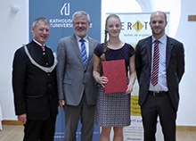 Der Leitfigur dieses Projektes war zu dessen 70. Todestag eine Gedenkveranstaltung gewidmet. Zahlreiche Besucher strömten vergangene Woche ins Johann Gruber Pfarrheim, unter ihnen Bundesminister Alois Stöger, Landeshauptmann Josef Pühringer, die Bischöfe Ludwig Schwarz und Maximilian Aichern sowie die Zeitzeugin Maria Hois - eine Nichte Grubers. Als Festredner konnte Anton Pelinka gewonnen werden. Musikalisch gestaltet wurde der Abend vom Duo Yevgenij Kobyakov am Akkordeon und Liudmila Beladzed (Cymbal). Der Jugendliche Simon Rögner verpackte seine Betroffenheit in einen Rap, den er mit Gesangskollegin Anna Baum dem Publikum präsentierte.